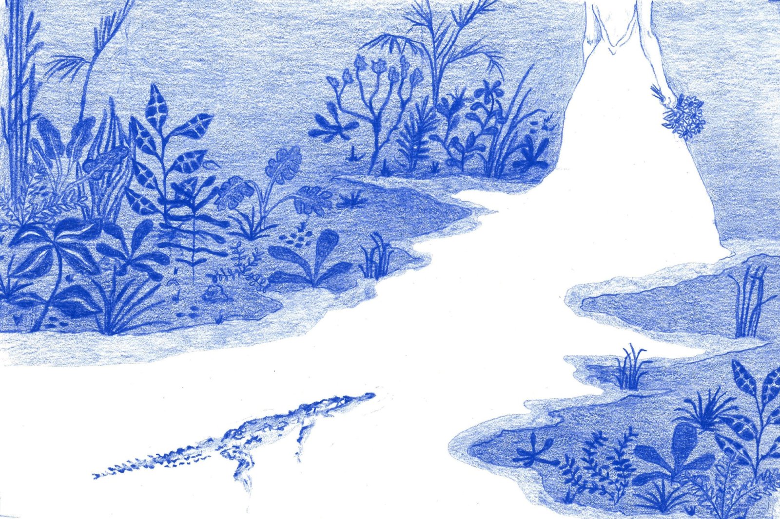 Once she was ten feet away, Minnie exhaled and relaxed her shoulders. The wind shifted, ushering in a smell of rotting vegetation. Still paddling backwards, she looked around to orient herself and realized she’d inadvertently traveled in the direction of Haliburton Canal, a favorite breeding spot for Sue gators. This mistake surprised her.